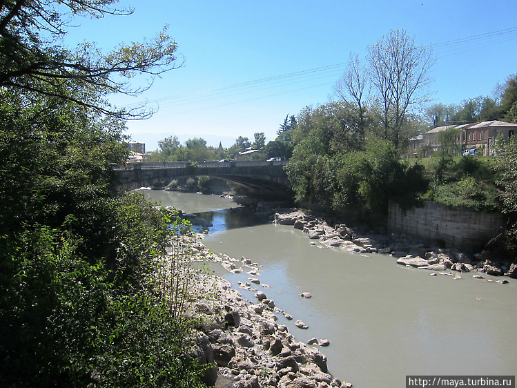 Заодно выяснилось, что находится этот "дом божий" недалеко от улицы Гелати, то есть он просто был по дороге от Гелатского монастыря к центру. Так что остался всего один рывок. И вот, мы уже на берегу Риони. Бредем вдоль реки, фотографируя все, что попадается на глаза. Покупаем на рынке хачапури и виноград тут же, прямо на улице. По облицованному потрескавшейся керамической плиткой тротуару доходим до парка.