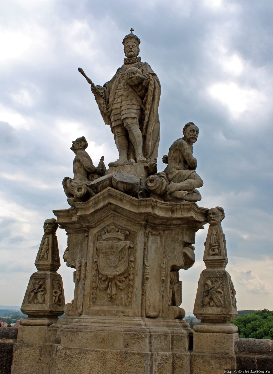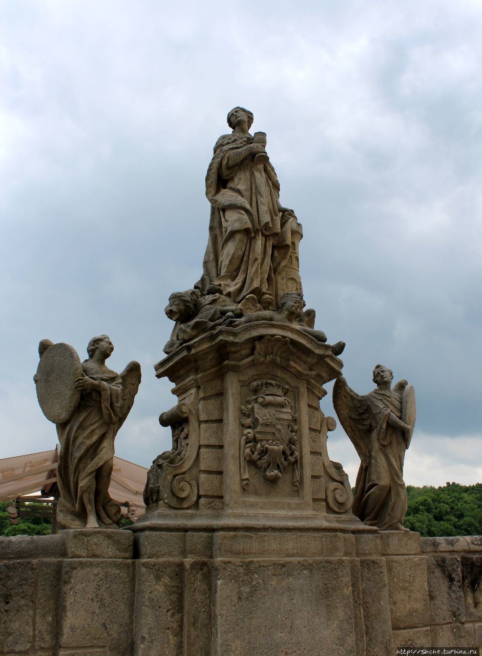Скульптурные композиции создал Франтишек Баугут с 1709 по 1716 годы. Позже была добавлена еще одна статуя Яна Непомуцкого.