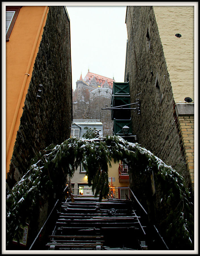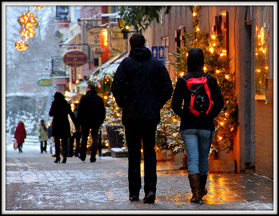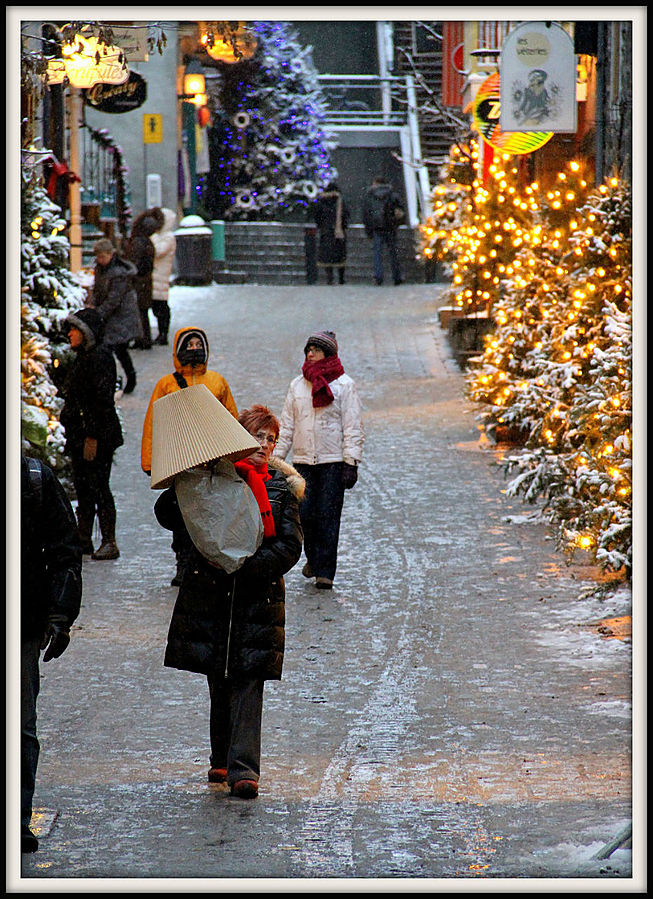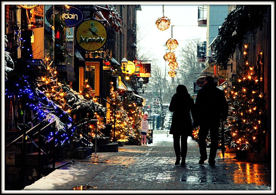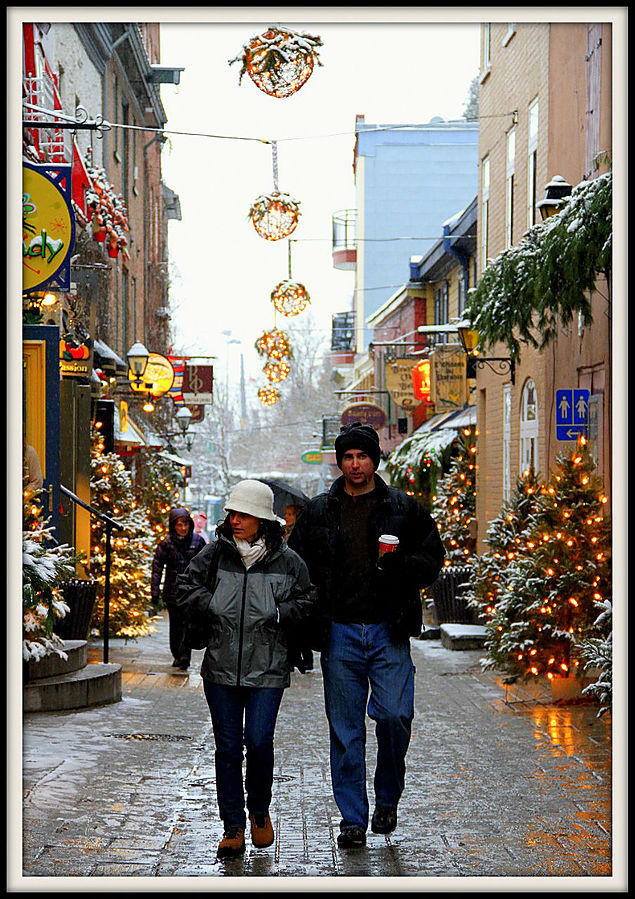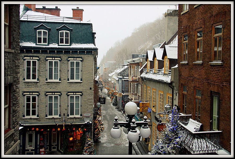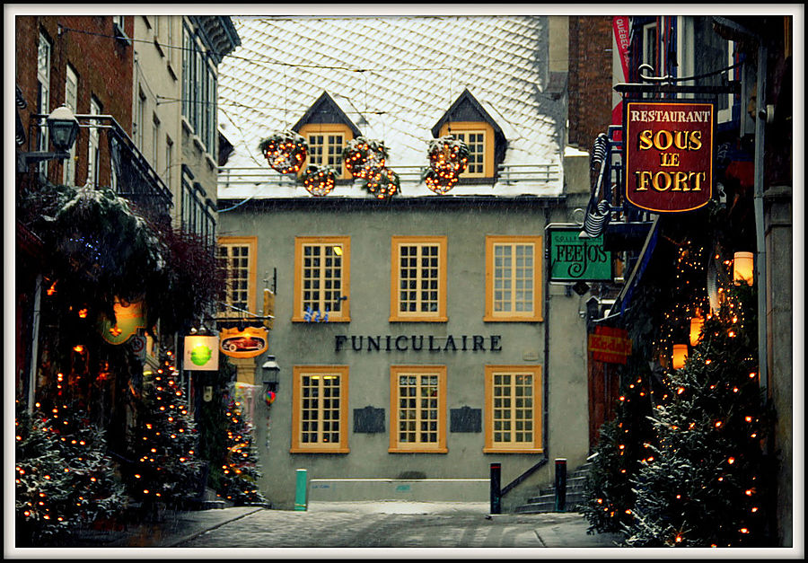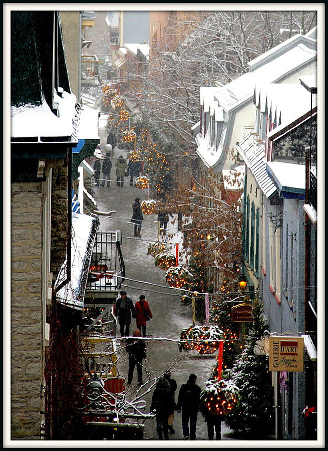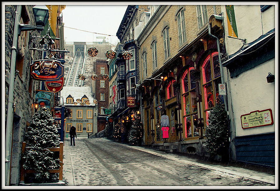 Квебек называют "городом театров". Но мне не удалось проникнуться его театральной душой. Зато я познал его снежно-романтическую атмосферу. В этот день в городе пошел первый снег. Настроение было сказочным. Особенно красиво стало, когда зажглись огоньки.