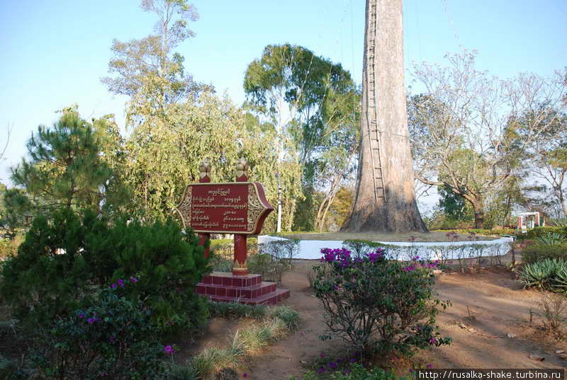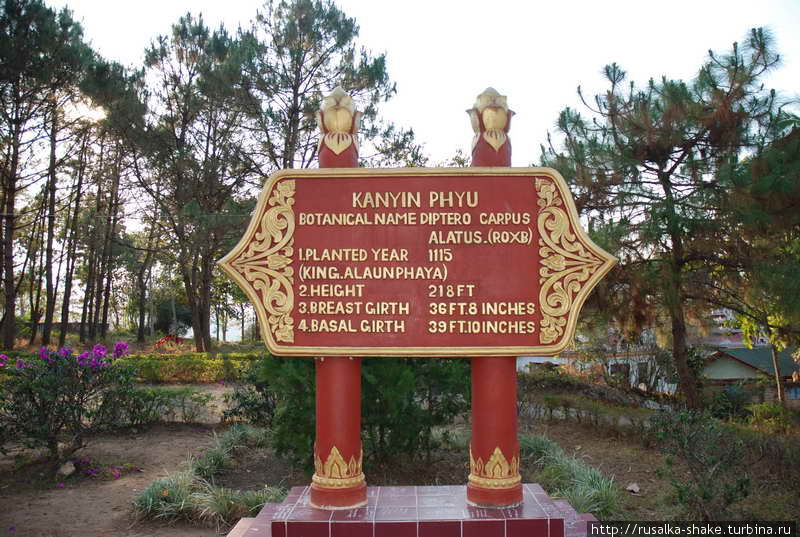 Это дерево было посажено в 1115 году (так написано на щите). А чуть ниже приписка в скобках (Королем Алаунпайя). Ищу в Википедии этого Короля, там написано, что он правил с 1752 по 1760годы. Где правда, спрашивается? Или может был другой Алаунпайя в 1115 году? Не понятно...