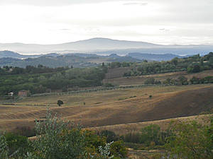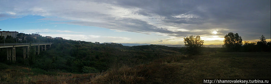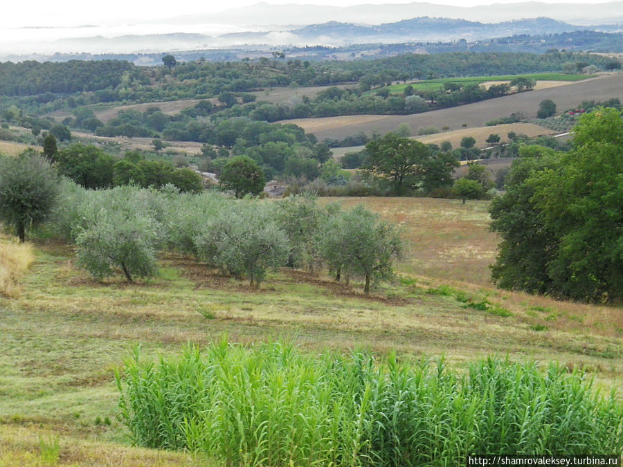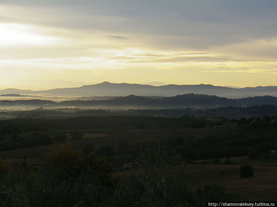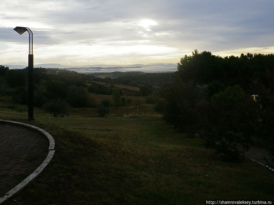 Смотреть в Кьянчиано особо нечего, кроме живописных полей и садов раскинувшихся у подножия гор, а также крышами далеких домов цепляющихся за гребни холмов.