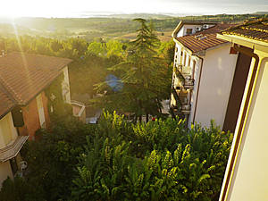 Раннее утро. В открытую балконную дверь проникают первые лучи Солнца. С высоты четвёртого этажа открывается панорама на склоны гор простирающихся до горизонта и черепицу окрестных крыш.