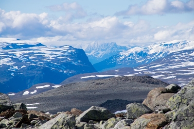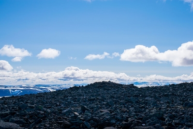 От парковки у озера до вершины 6 км нужно подыматься по морене из гнейсового гранита возрастом 200 млн. лет, итого получается 12 км бдительности. Такие участки маршрута сложно преодолевать, это как преодолевать курумник в Ергаках. Тропа с норвежской стороны никак не промаркирована, и если бы спустился туман, то я бы тупо развернулся и пошёл вниз, не факт что не заблудился бы. Даже не смотря на полярный день, который длится 24 часа.