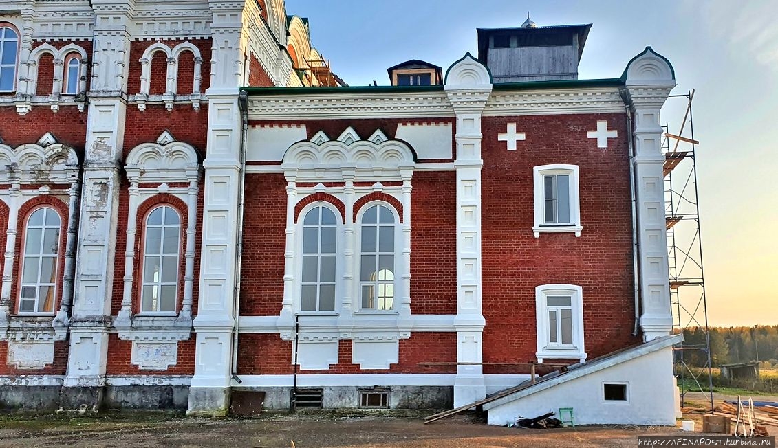 К 1894 году был построен кирпичный завод, а затем два храма: преподобных Зосимы и Савватия и Стефана Пермского с колокольней и богатой библиотекой с духовной литературой в тысячу томов. Построен кирпичный сестринский корпус с двумя деревянными двухэтажными пристройками; два двухэтажных деревянных дома священников; гостиница; избы для рабочих; амбары; скотные дворы; конюшни; каретник; мастерские: гончарная, скипидарная, ковровая, керамическая, деревообделочная, швейная, иконописная, золотошвейная.