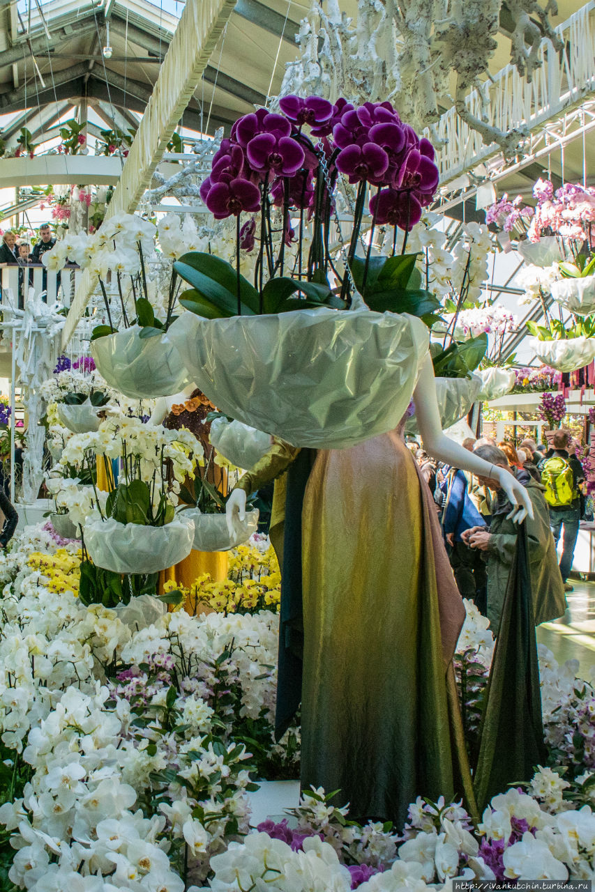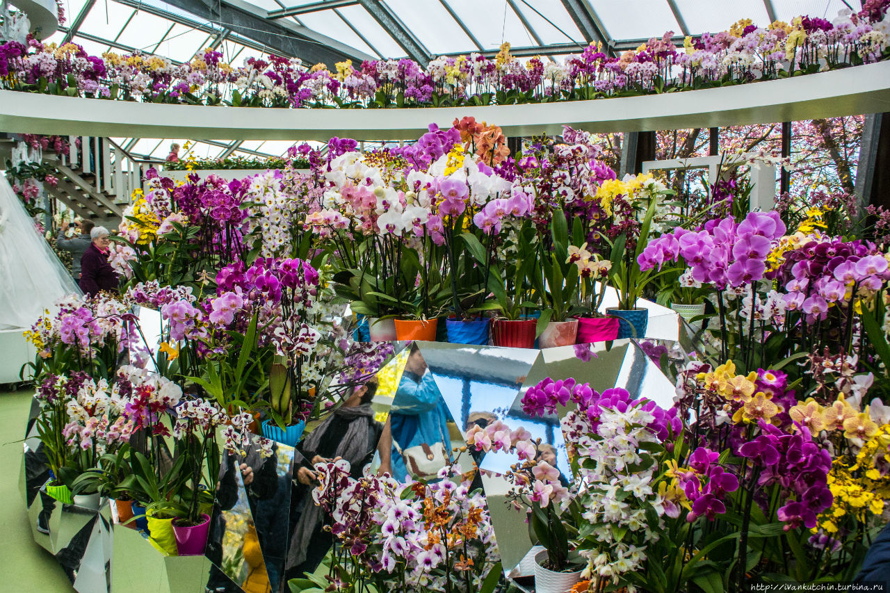 А в самом парке Кёкенхоф кроме того, что цветы растут под открытым небом, расположены еще и павильоны со специальными цветочными композициями. К примеру, орхидейное царство.
