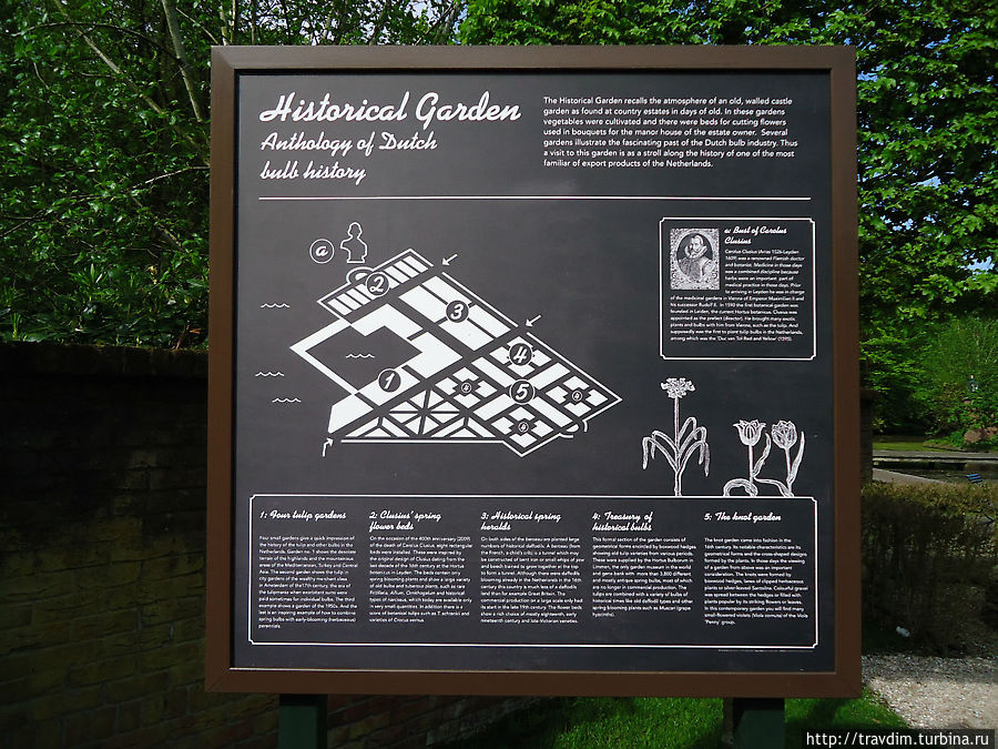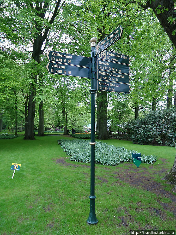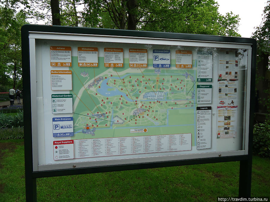 Пройдя дальше мы обнаружили план парка Кёкенхоф с обьяснениями на английском языке. Если Вы дружите с английским, то это Вам поможет, а если нет, то айда дальше — впереди ещё масса интересного.
