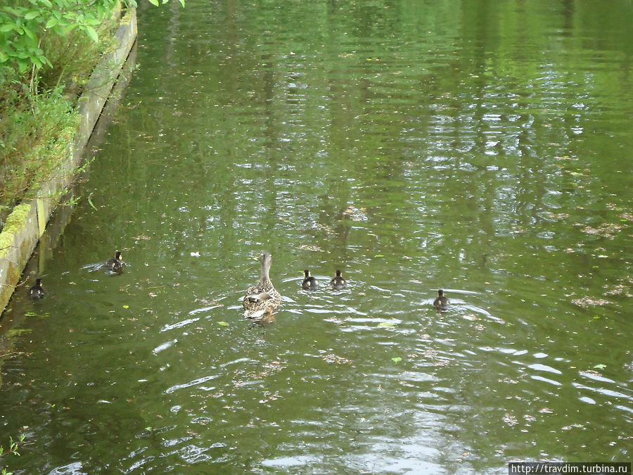 Немного впереди мы увидели небольшую заводь, где любят поплавать уточки, которые ничего здесь не боятся.