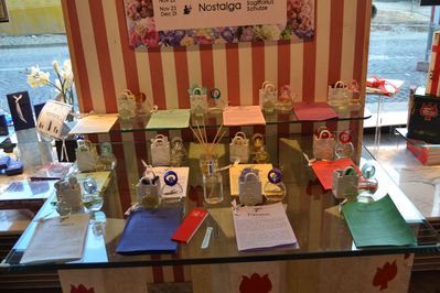 который символизирует роскошь и процветание.Здесь мы видим "Фарина Одеколон 1709" разлитый в различную стеклянную тару,