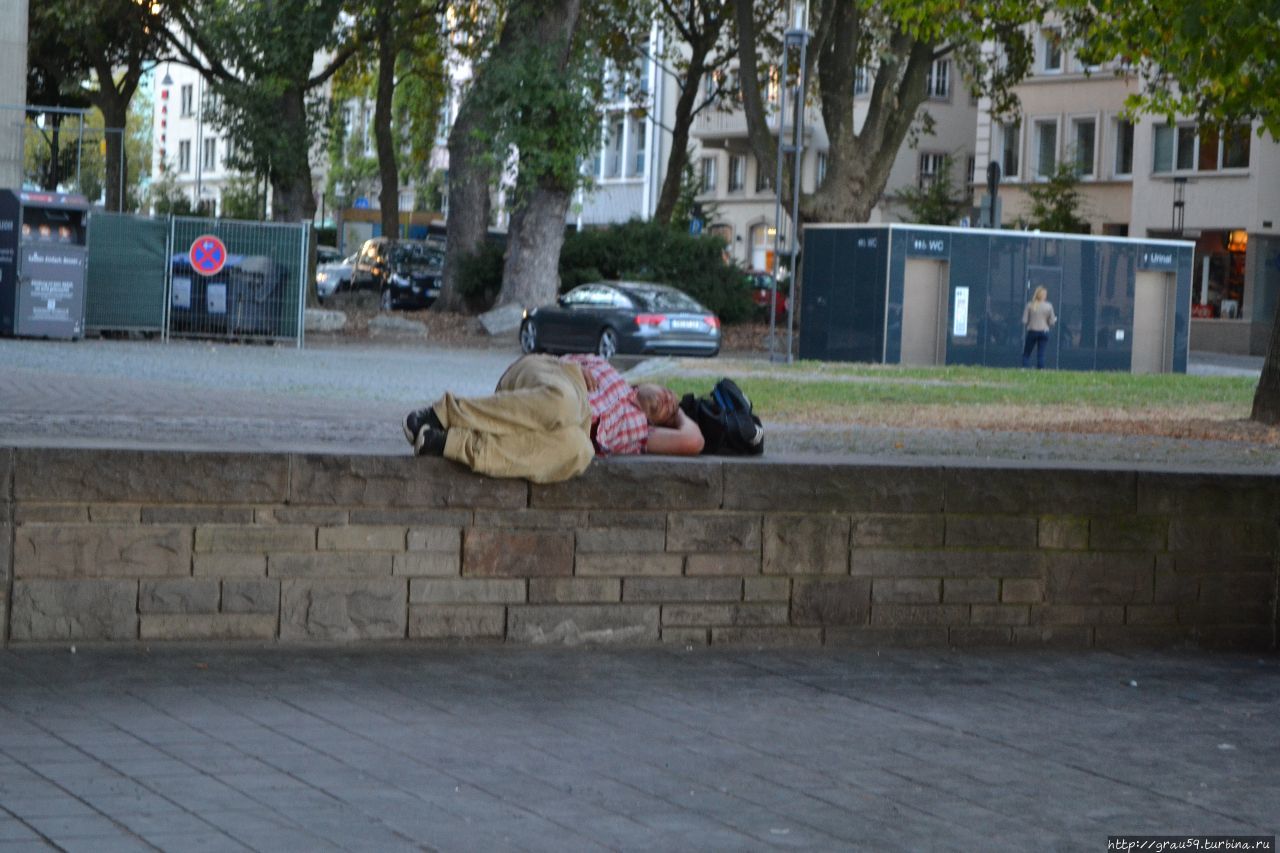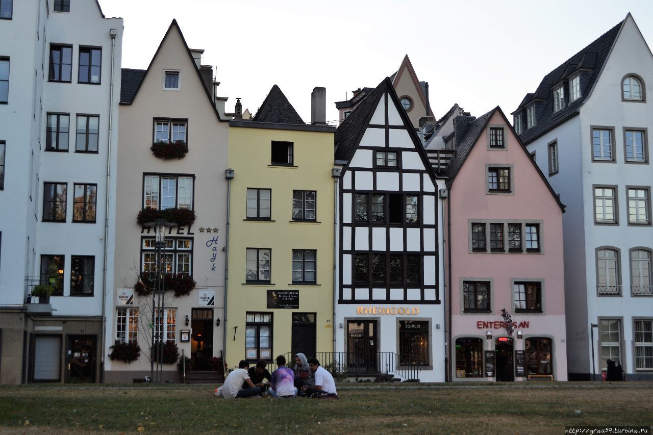 Хотя "отдыхающих" в других местах Кёльна также хватает Гуляя по Кёльну. Смотрите вниз Кстати, множество людей располагаются на лужайках вдоль набережной.