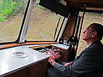 Мы сели прямо спереди, возле машиниста с мужественным лицом, сошедшим с пленки кинофильма. Только там он ведет не туристический вагончик
