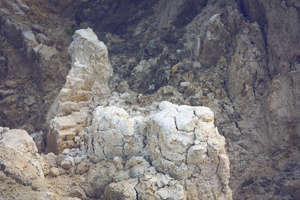 На берегу можно встретить различные причудливые каолиновые формы, фигуры.