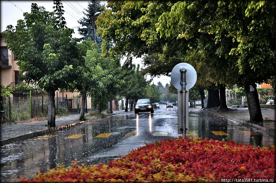 Только успели въехать в город и посмотреть на Римские термы 2 века, как вдруг сильный ветер зашумел над нами и крупные капли застучали по асфальту и листьям деревьев. Вот и всё, остальную часть города смотрели из окна автомобиля.