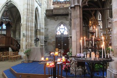 Базилике не нужны адреса и ориентиры, она сама ею является. Стоит, словно закрывает собой всю деревню, нависает всей готической красотой и мощью на фоне одноэтажных строений, окруженная полями пшеницы. Наверное, первая церковь, которую так легко фотографировать, обзор просто великолепный, ничего не мешает. Мы меняем маршрут и едем в л'Эпин, небольшую деревню примерно в восьми с хвостиком км от города Шалон-ан-Шампань, с тайной надеждой избавиться, наконец, от надоевшего дождя.