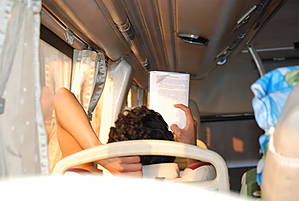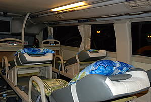 Стоит сразу отметить, что найти билет не составит никакого труда, даже при том, что от некоторых автостанций маршрутов до этих городов просто нет. В общем, идите вдоль побережья и вашему взору откроются местные турагентства, которые обязательно отправят вас в нужном направлении. Будет предложено 2 вида автобусов. Это Sitting Bus (Ситтинг Бас) и Sleeping Bus (Слипинг Бас). Первый – с сидячими местами, второй – с лежачими. Стоимость до Ла-Ги для обоих вариантов – 5 долларов. Время в пути 6-7 часов. По желанию вас могут забрать от отеля или от офиса турагентства. Для разнообразия наш выбор пал на “спящий автобус”. Что он из себя представляет? В салоне этого транспортного средства расположено 3 продольных ряда откидывающихся лежачих сидений. 2 ряда по двум сторонам у окон автобуса, и один – по центру. Есть и второй ярус выше. Процесс загрузки пассажиров таков. Перед входом, чтобы пройти в салон до своего места, необходимо снять обувь и сложить в предложенный водителем целофановый пакет.Чтобы выйти из автобуса, к примеру, на промежуточной станции, нужно пройти к выходу и обуться на специальном коврике. Отмечу, что вся эта процедура очень долгая и муторная, да и сам “спящий бас”, как мне показалось, не намного комфортнее обычной “сидячей буханки”. Кому не спится — можно поснимать пейзаж за окном.