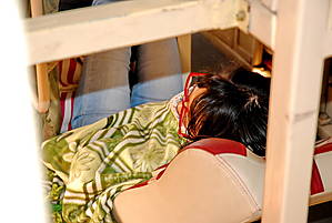 И если нет повязки, то можно поцепить цветное полотенце!)