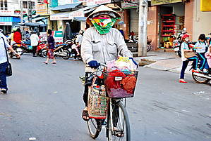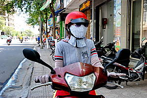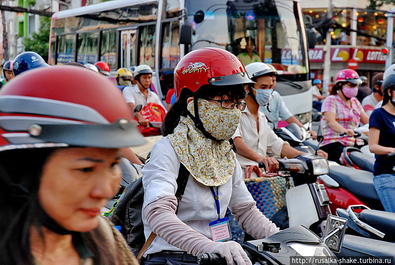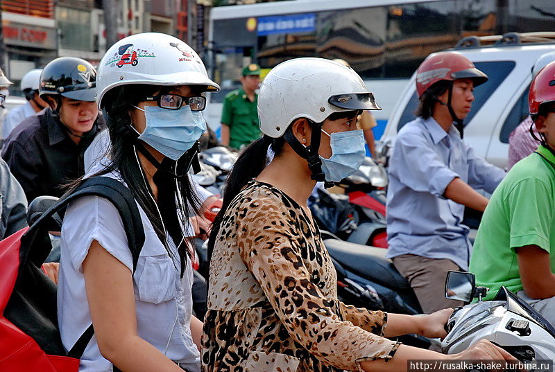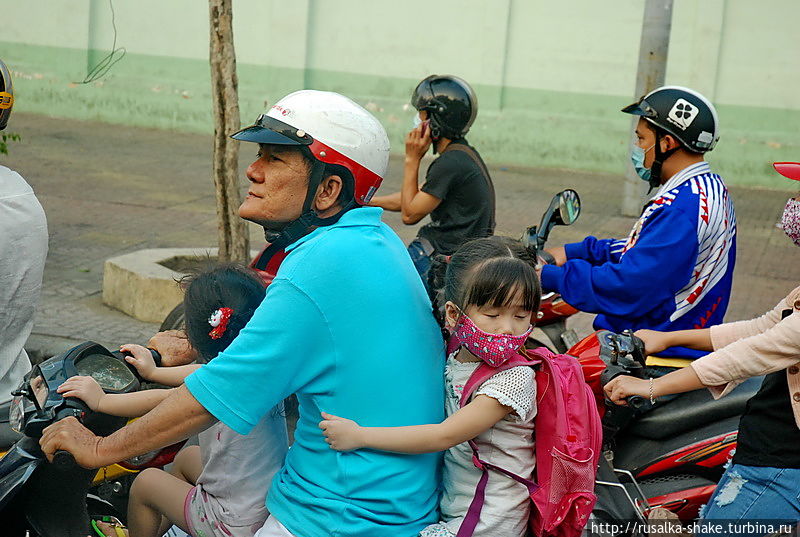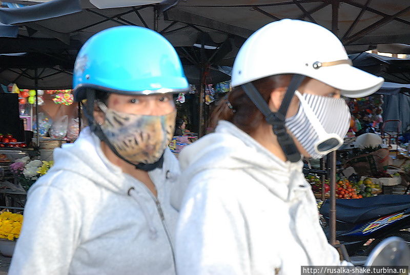 Активнейшее мототранспортное движение в крупных городах порождает сильное загрязнение воздуха, а на загородных трассах, где оно более-менее разряжено, на скорости могут обдать грязью или сухой дорожной пылью с песком. В таком случае конечно же не помешает и намордник на лицо. Всё правильно, вьетнамцы берегут свои лёгкие, и повязка выступает в роли неплохого респиратора.На детей тоже натягивают эти цветные тряпочки.
