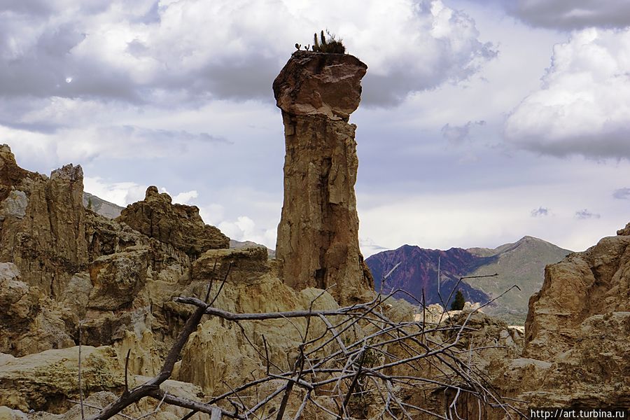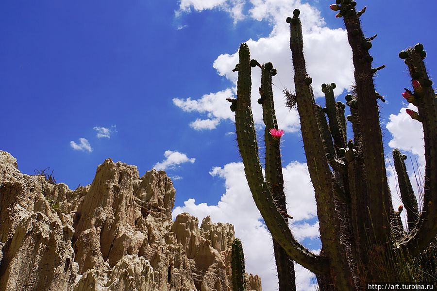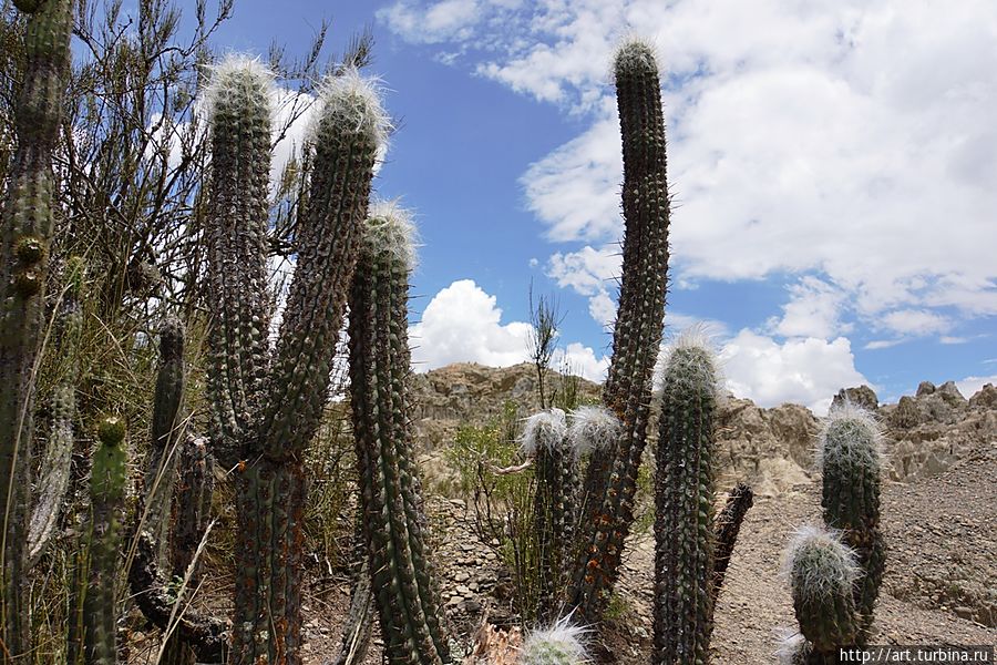 Ла-Пас. Лунная долина. Камни и кактусы.