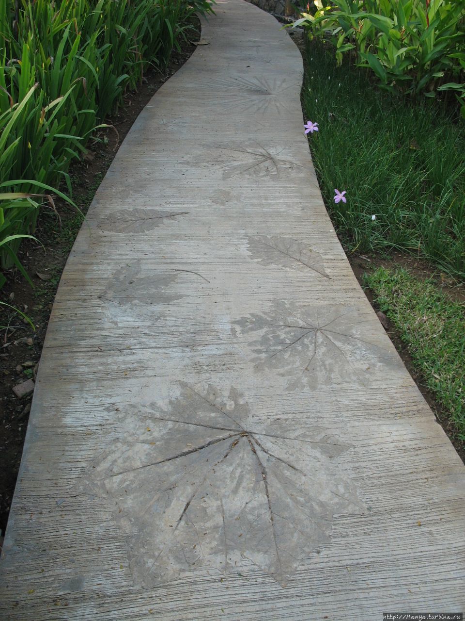 На следующий день пошли гулять по тропическому саду отеля, через который проложены бетонные дорожки, украшенные рисунками листьев и цветов.
