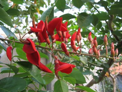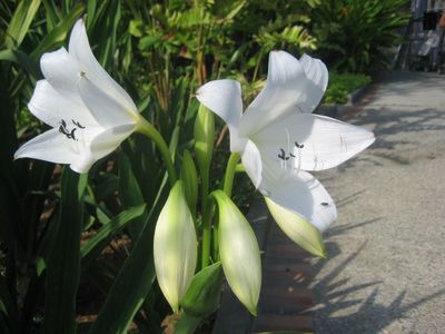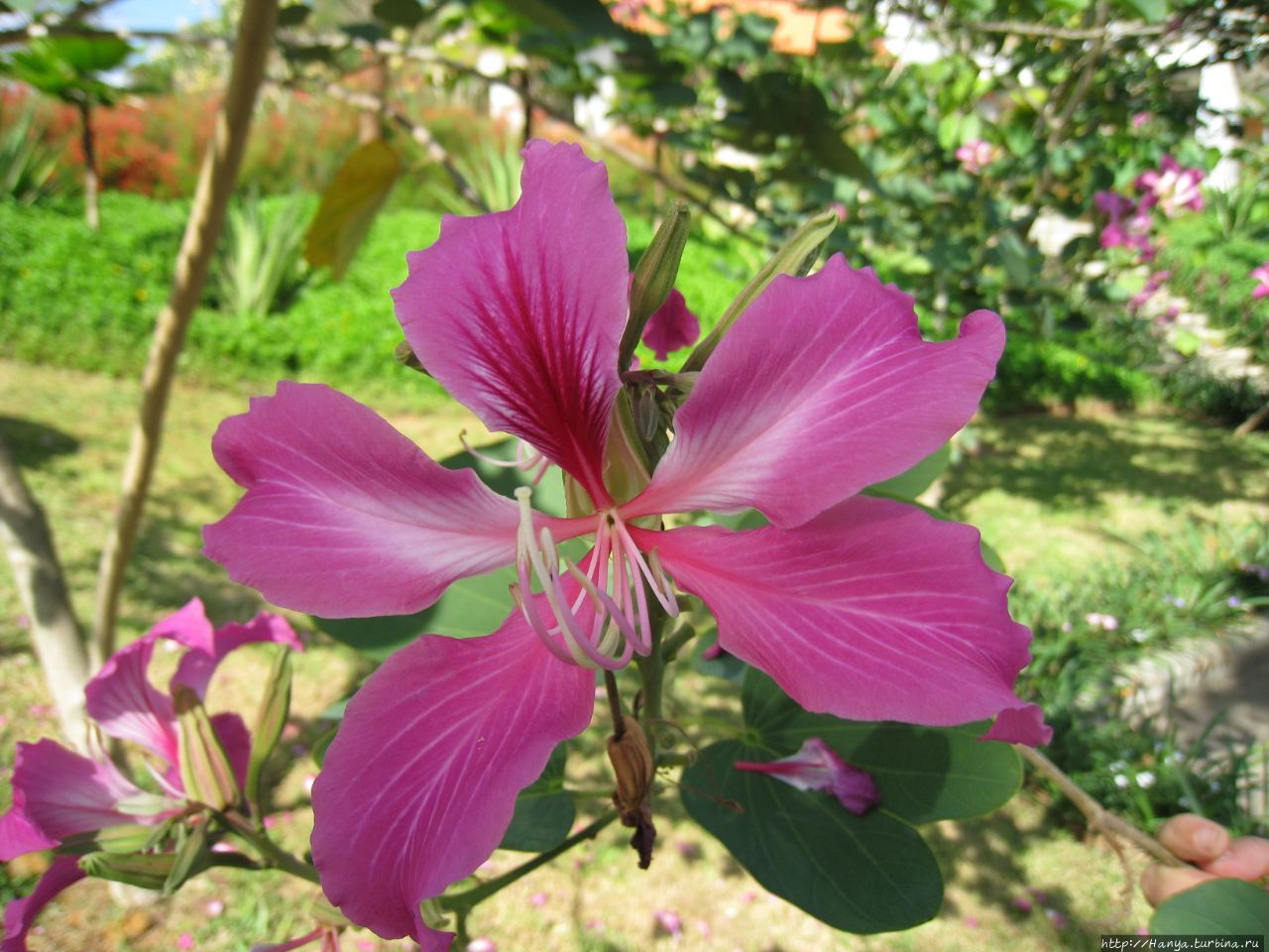 Сегодня у нас фотосессия цветов, но уже при свете дня. Выдумщица-природа особенно постаралась в тропиках, такое здесь разнообразие форм и раскрасок цветок. Назову некоторые из них, растущие здесь в приотельном садике — Penang Sloe с пропеллерообразными белыми цветками, собранными в соцветия, сиреневая Bauhinia с длинными тычинками, разнообразные виды разноцветных олеандров, белоснежные лилии, красный гибискус.