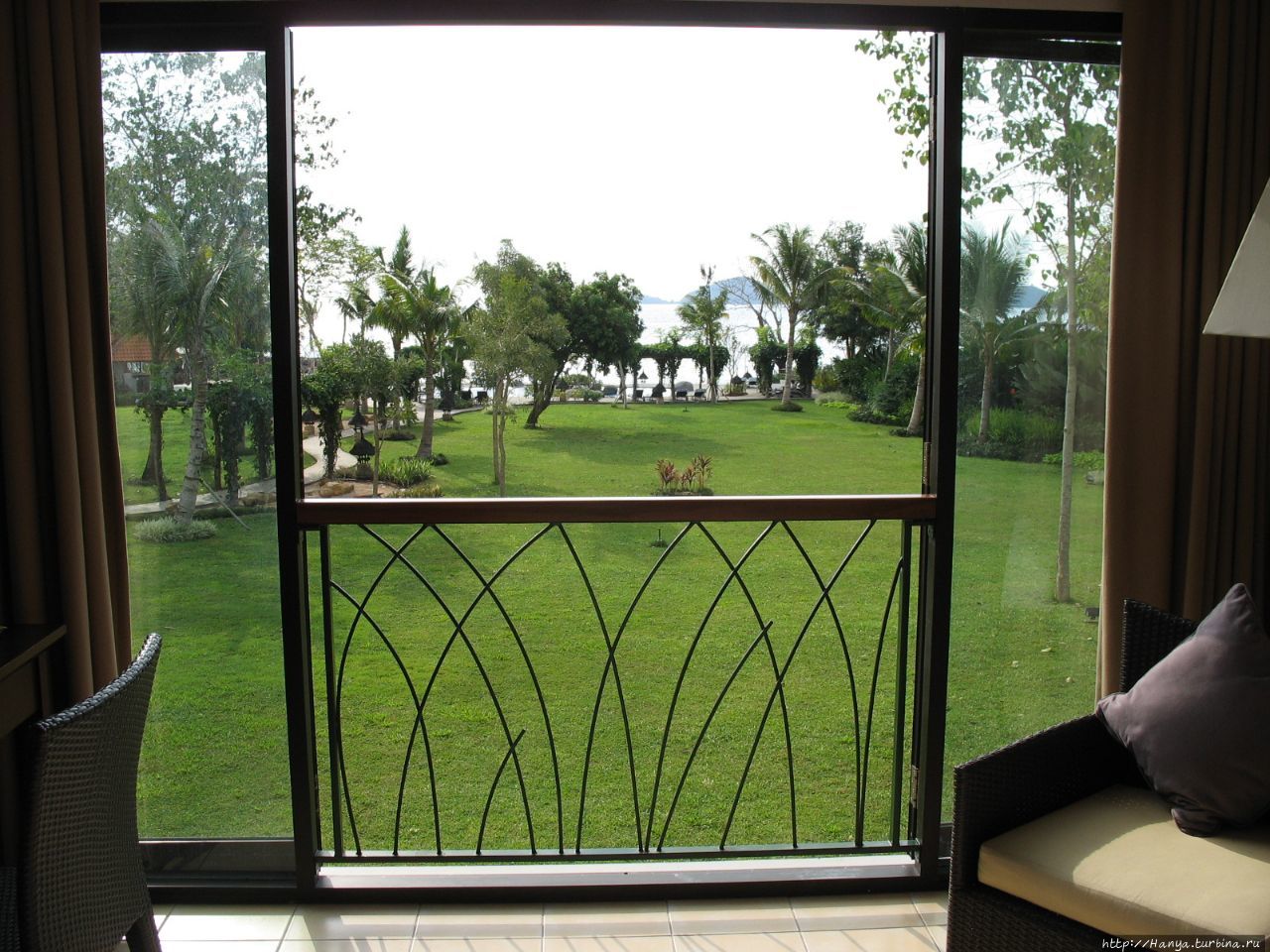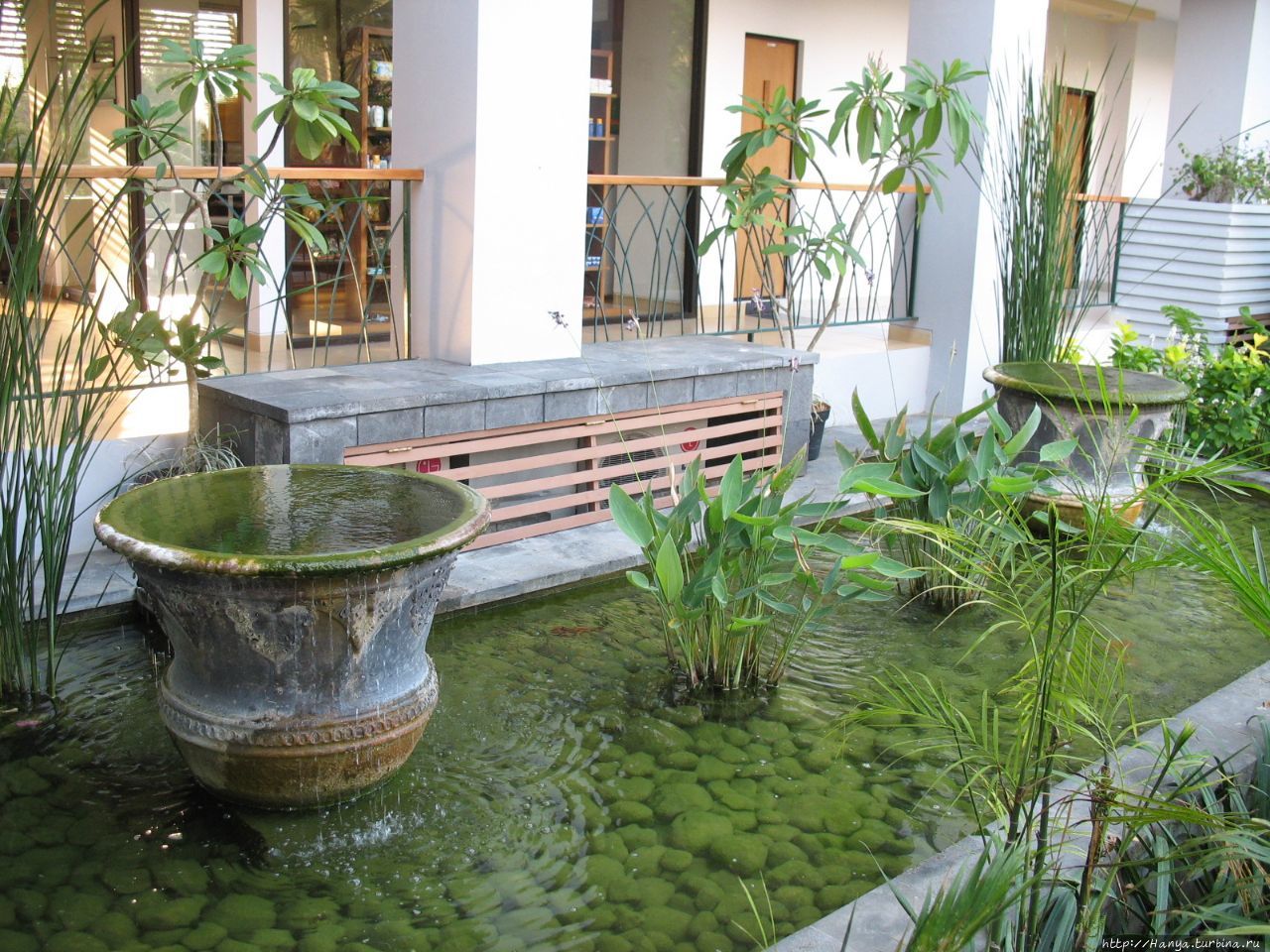 Из окна нашего номера хорошо виден и сам сад, и бассейн, и ресторан, в котором мы каждое утро завтракаем. Дорога к нему проложена через небольшой прудик с красными рыбками, журчащей водой и летающими стрекозами.