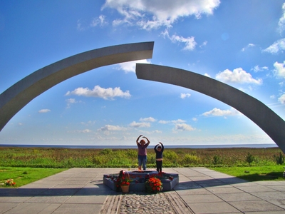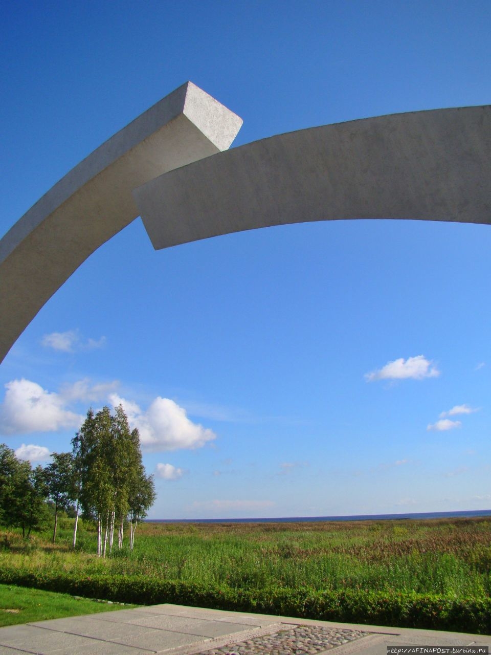 Колеи ведут от озера и обрываются у края площадки, напоминая о величии ратного труда и