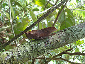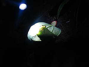 Ходили ночью гулять по лесу. Видели офигенно красивую прозрачно-салатовую лягушку на листе, маленького тарантула и маленького скорпиона. Жалко, нельзя было потискать, пепельно-серый пушистый подросток-тарантул был довольно агрессивным, стремительно прыгал, а потом удирал. А скорпион вообще мог убить. Вообще в лесу полно пауков, всяких разных, я немного игралась с пауком-волком — он не ядовитый, это паук-охотник, гоняется по лесу за насекомыми и хватает их жвалами. Я подсовывала ему палочку, и он на нее яростно бросался. Мы пытались подсунуть ему жука, но он его почему-то не захотел. Ночных фоток тоже нет. Берите в Амазонку клевую камеру! Только не забудьте пристегнуть ее железными цепями к телу, чтобы не стянули по дороге.