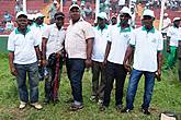 Играет духовой оркестр на заднем плане и какие-то дяденьки что-то говорят с трибуны, а народ их вполуха слушает и отдыхает. Тут же, конечно, появляются продавцы газировки-выпивки-закуски, разносящие свой товар, как и положено в Африке, на головах, а также дополнительные самоходные музыканты – традиционные барабанщики. Так что весь праздник труда проходит непринужденно и достаточно весело.