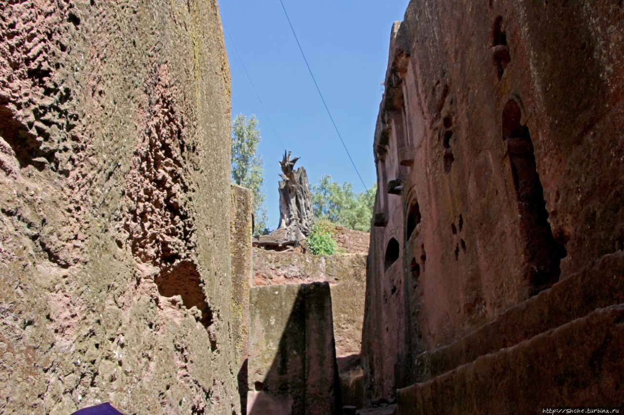 Как мы помним, храмы Лалибелы должны были стать новым Иерусалимом, а какой Иерусалим без Голгофы? Вот эта церковь и играет ее роль...