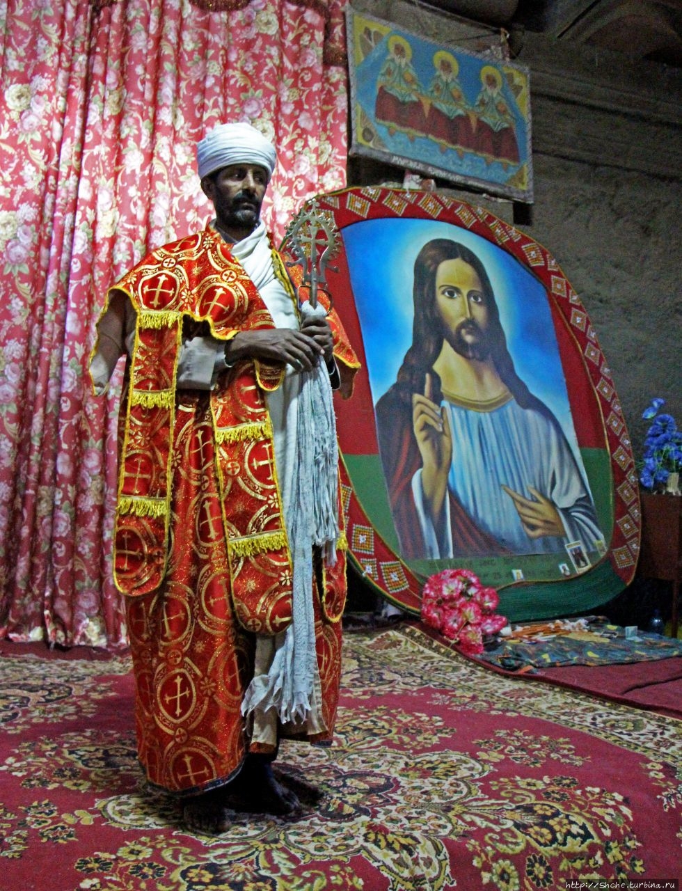 По просьбе опять же наших фотографов, настоятель храма вынес свой крест (невооруженным глазом видно, что он сильно отличается от "Креста Лалибелы") и немного по-позировал нам.