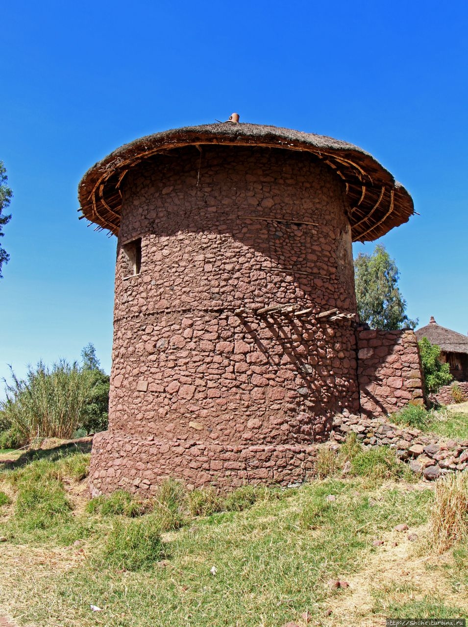 11 средневековых вырезанных в скалах пещерных церквей этого "Нового Иерусалима" XIII в. находятся в горном районе в центре Эфиопии, неподалеку от деревни с традиционными, округлой формы, хижинами . (whc.unesco.org/en/list/18)