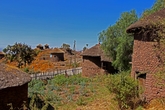 такие домики строили представители народа омхара на протяжении многих столетий. Видно, что первые домики имели каменные фундаменты и цоколя, а единственный этаж делался из глины и веток (как "мазанка").