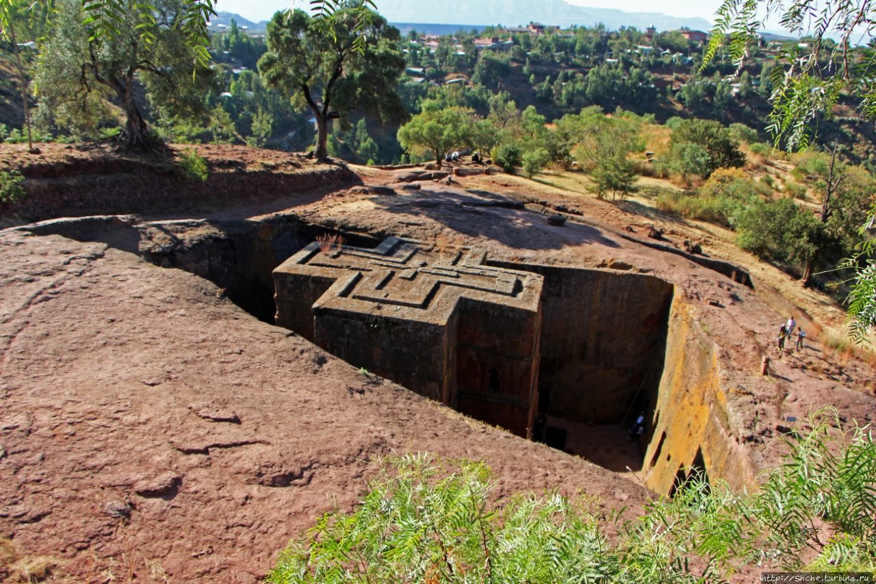 Это церковь святого Георгия, последняя по времени создания, и самая эффектная из православных храмов Лалибелы.