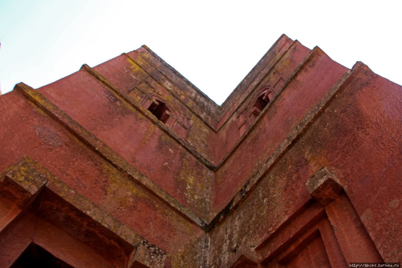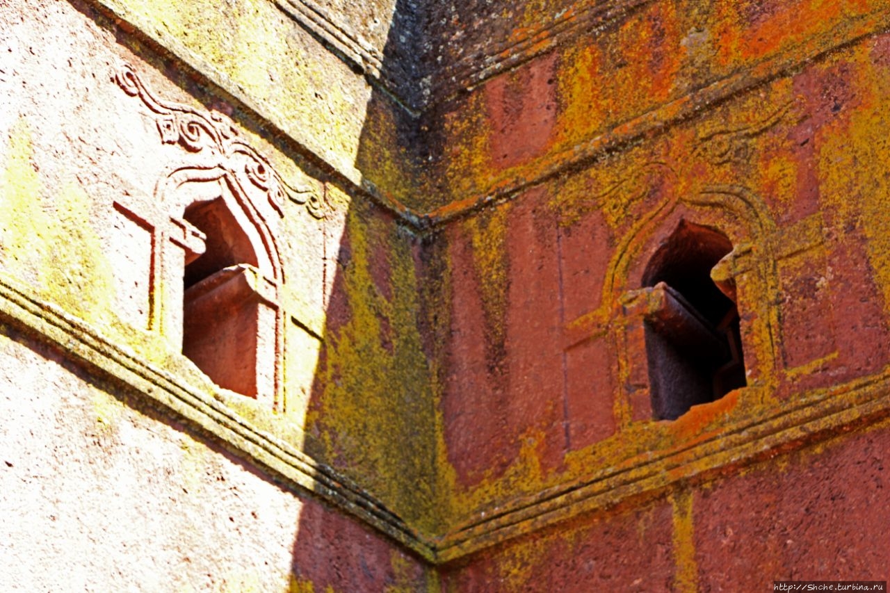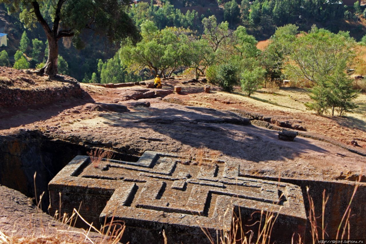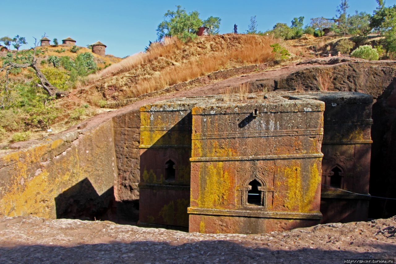 То есть церкви просто вырубались в мягкой породе на вершине холма, углубляясь на десяток метров вглубь. Но затея сперва провалилась. Не продуманное заранее водоотведение просто затапливало и размывало недостровенные церкви. Тогда были построены две группы по пять церквей, где пространство перед храмами было расчищено. Только спустя около сотни лет, уже получившим не малый опыт строителям пришел в голову план, как сделать монолитное сооружение, полностью углубленное внутрь холма. Как была сделала последняя, одиннадцатая церковь св. Георгия, ставшая украшением всего комплекса.