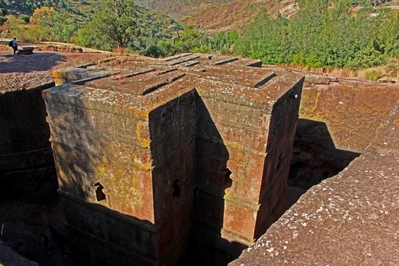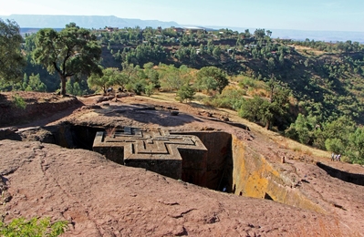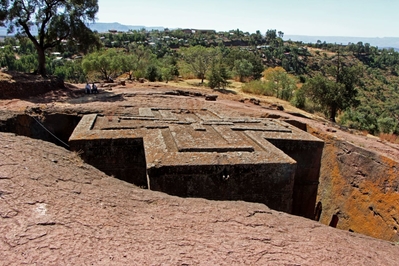 Это церковь святого Георгия, последняя по времени создания, и самая эффектная из православных храмов Лалибелы.