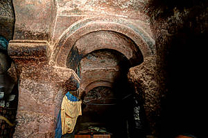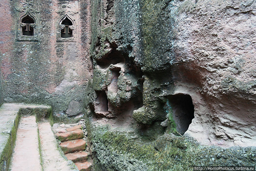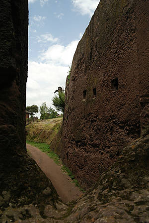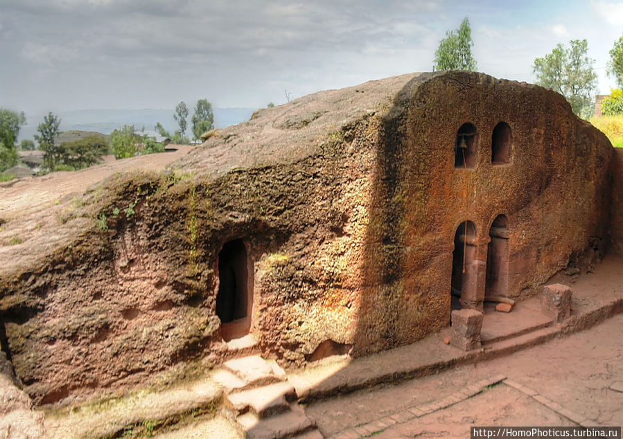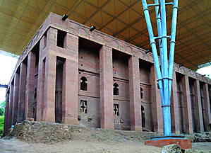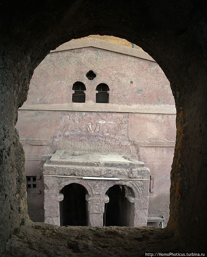Гебре Мескель Лалибела взошел на престол достаточно поздно, уже за полтинник, и порядка половины своей жизни провел в Иерусалиме, по сути, сбежав от конкурентов на престол, и получил он свою корону не без помощи тамплиеров, с которыми он там подружился. Собственно, набрался он в Иерусалиме многому, видимо, побывал не раз и в Петре и был поражен величием местных вырезанных в горах храмов, и, будучи человеком очень верующим, решил построить второй Иерусалим у себя на родине, тем более, что оригинальный Иерусалим далеко, да и мусульманами захвачен. Разметив территорию, нарек местную речушку Иорданом и принялся методично за дело — копать много разных церквей, в основном монолитных, благо местный песчаник достаточно легко поддавался обработке. В основном церкви сооружались следующим образом: по периметру будущего здания сооружался ров, глубина которого должна была примерно равняться высоте храма, а потом уже постепенно вынималась порода изнутри, формируя стены, потолок, колонны, имитацию балок, резались украшения, купола и прочее.