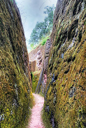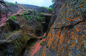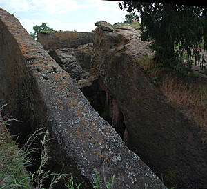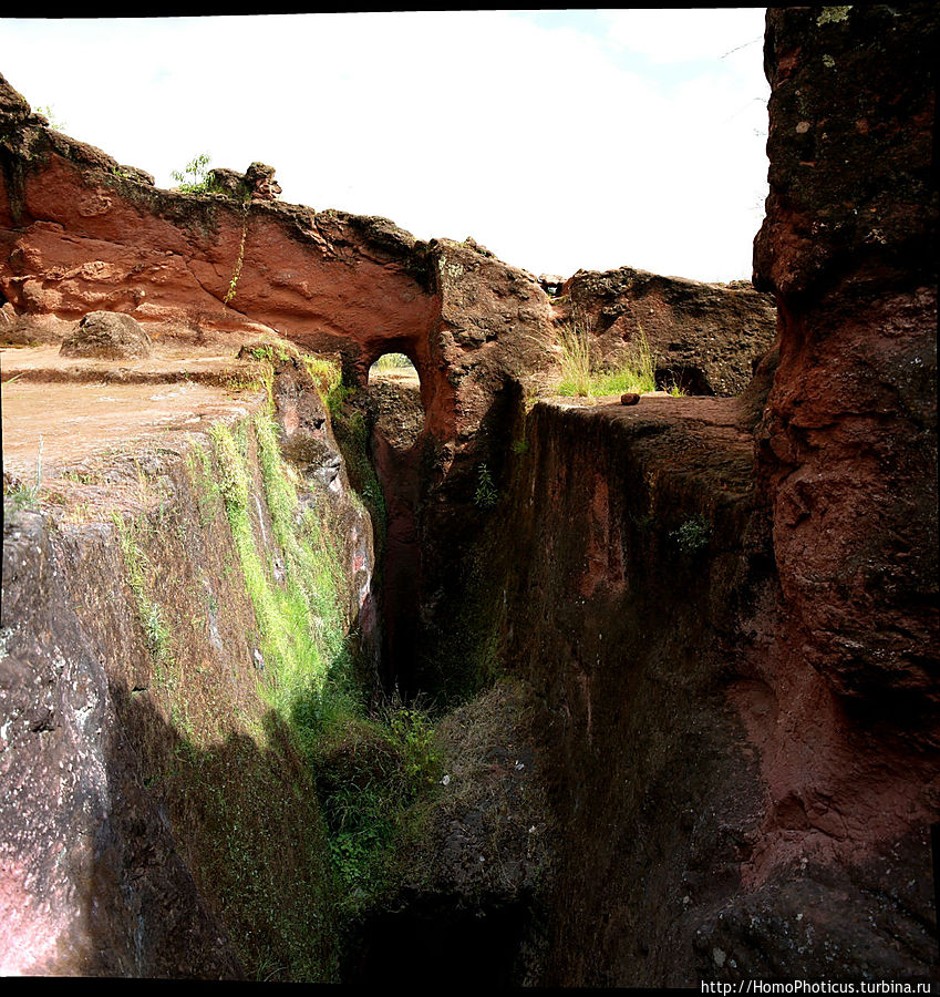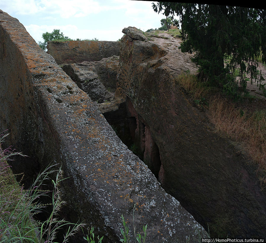 Ниже по склону просматриваются еще траншеи, но то ли Лалибела не успел, а остальным было наплевать, то ли базальт слишком близко подходил к туфу — но эти траншеи археологической ценности не имеют, а лишь отводят лишнюю воду.