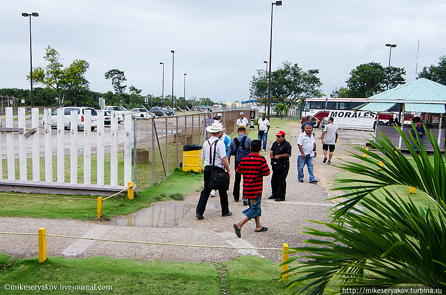 Уже будучи на границе я очень жалел, что мне так и не удалось встретить меннонитов, а их нигде кроме Белиза в Центральной Америке увидеть нельзя и я договорился с пограничником в Белизе, что сфоткаю их из пограничного терминала, хотя бы со спины, не знал я тогда, что вскоре я опять встречусь с этим пограничником, и диалог у нас будет очень и очень длинный. Меннониты на следующих фотографиях — это люди в белых ковбойских 76шляпах, о них я напишу в следующем посте о Белизе.