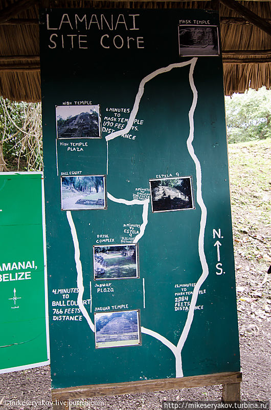 В майянском городе Ламанаи проживало 60 000 человек. С местного наречия это название переводится как «крокодил, погружённый в воду». Белиз не очень богатое государство, поэтому раскопки городищ майя на его территории проходят очень медленно, в частности огромный город Ламанаи «раскопан» всего на 2%. 98% построек всё ещё находятся в земле, «ожидая своего часа».
