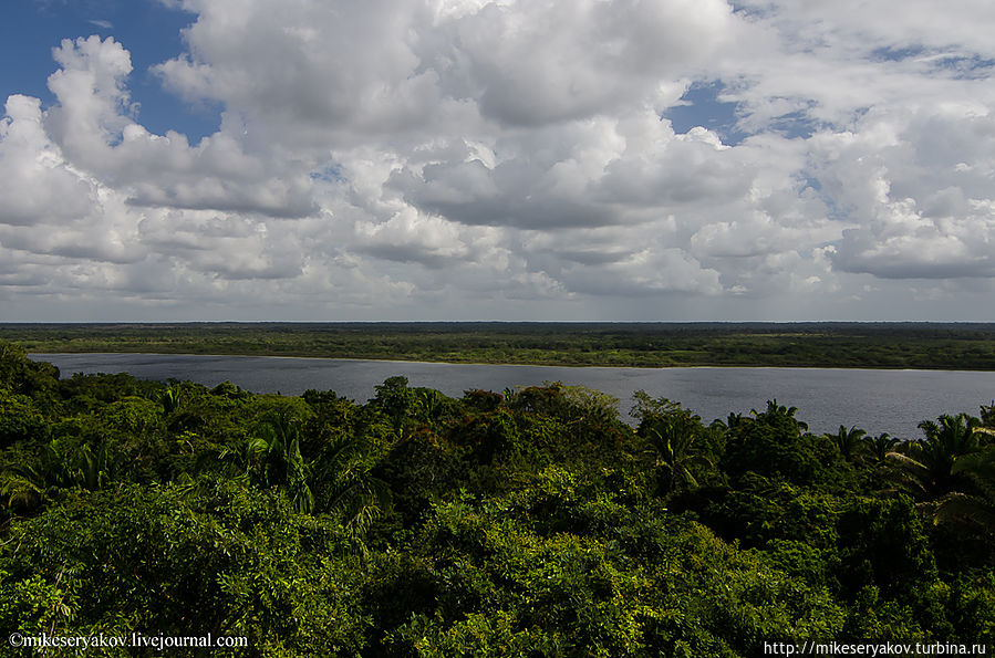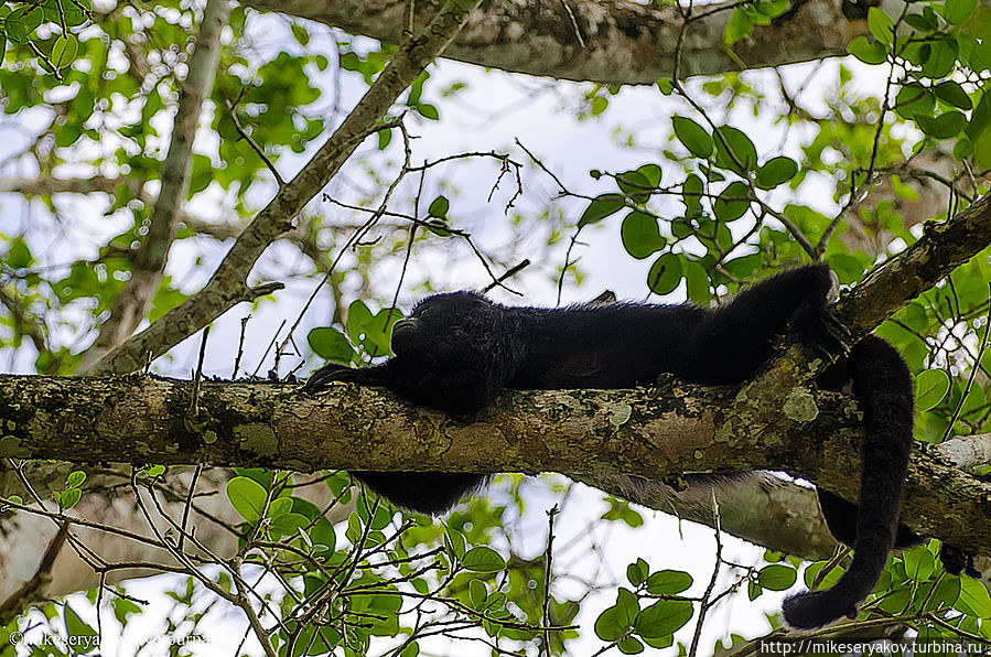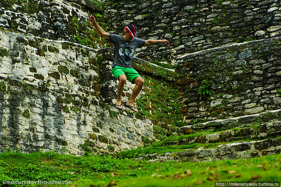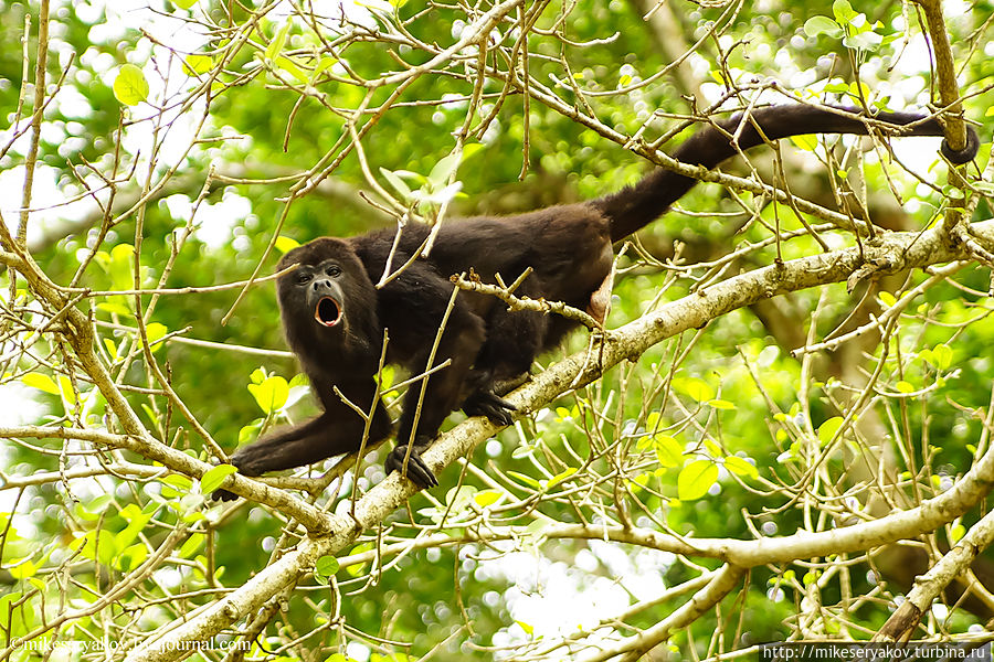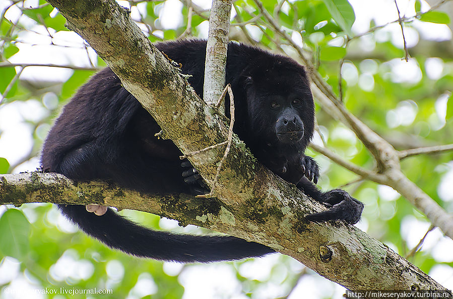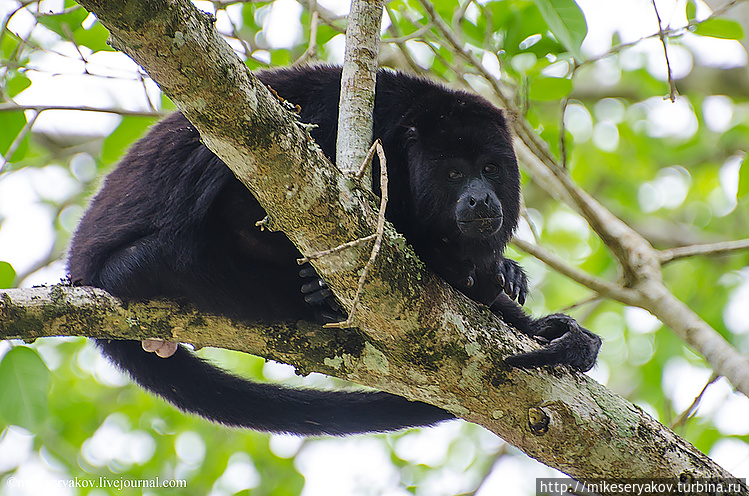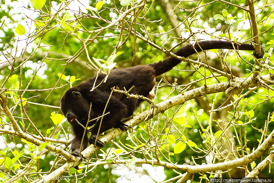 Очень много в Ламанаи по деревьям перемещается чёрных обезьян, так что надо держать руку на пульсе, а то есть вероятность быть «атакованным сверху».