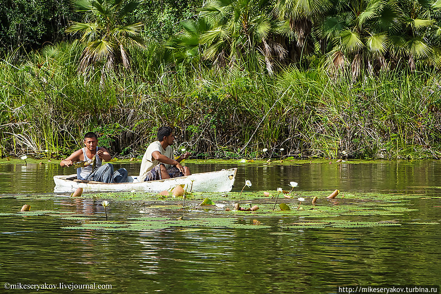 По дороге к нашей лодке подплыли местные рыбаки, меня немного удивило, как они так плавают на таких маленьких лодках по речке, совершенно не боясь крокодилов.