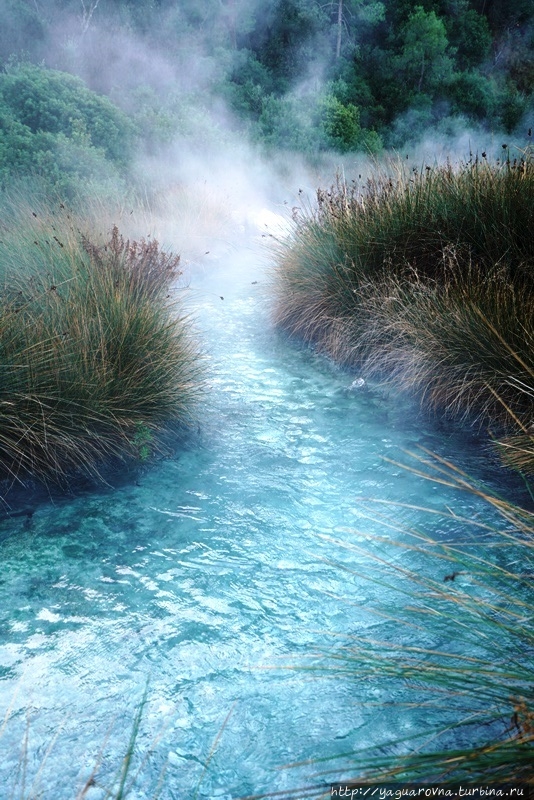 По этой местности протекает несколько речушек-ручейков, вода которых круглый год на уровне +40 ^С. Их легко заметить с трассы благодаря легким клубам пара.