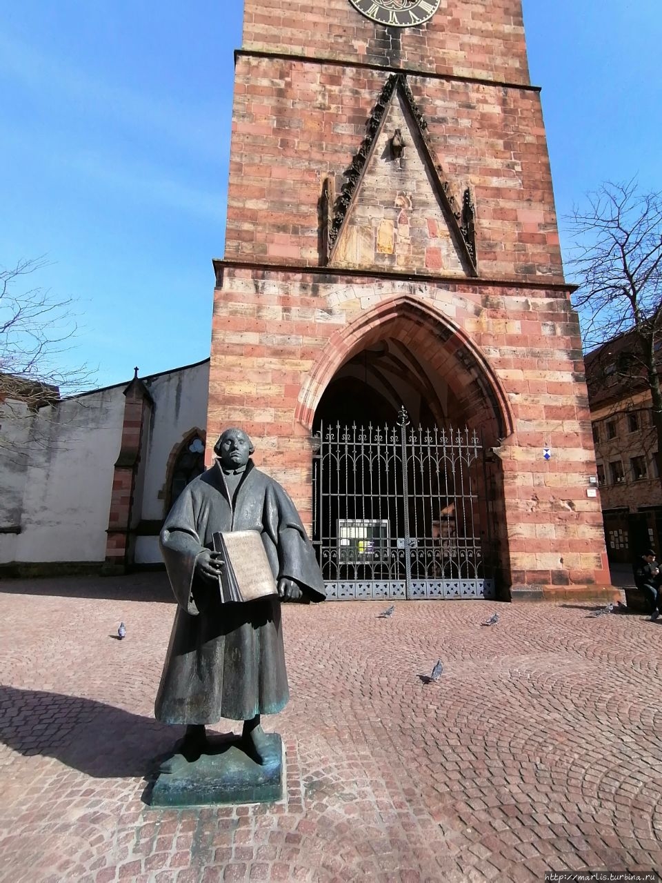 Штифтскирхе стала одной из первых евангелических церковей в Пфальце, перед ней установлен памятник Мартину Лютеру.