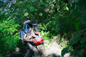 Бесконечные подъемы и спуски заставят попотеть даже опытных треккеров. Как же удивительно увидеть у портера вместо мешка за спиной настоящего 4-летнего ребенка!
