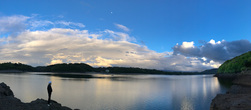 Где-то на полпути магических качеств жена снова начала загадочно улыбаться, а это верный признак того, что она опять о чем-то договорилась на самом высоком уровне и фотоаппарат из рук лучше не выпускать. На этот раз мы решили поехать на другую сторону озера, но добраться до замка оказалось значительно труднее, чем я думал. Через прорезь в казалось бы бесконечной черноте вдруг просочилось закатное, уходящее за горизонт солнце, и это было уже настоящее чудо.
