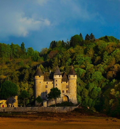 В середине 1946 года шато де Валь должен был исчезнуть с лица земли. Компания EDF (Электрисите Де Франс) выкупила его у владельцев и должна была утопить в озере, образовавшемся после запуска плотины. Однако, вода лишь облизнула подошвы старинного замка, остановившись всего в нескольких метрах от его основания. Кто-то назовет это ошибкой инженеров, кто-то сочтет за изменение планов, а по мне так случилось ровно то, что и должно было случиться. Франция — это не та страна, в которой в мирное время, в середине XX века мог погибнуть такой красавец, и он конечно выжил.