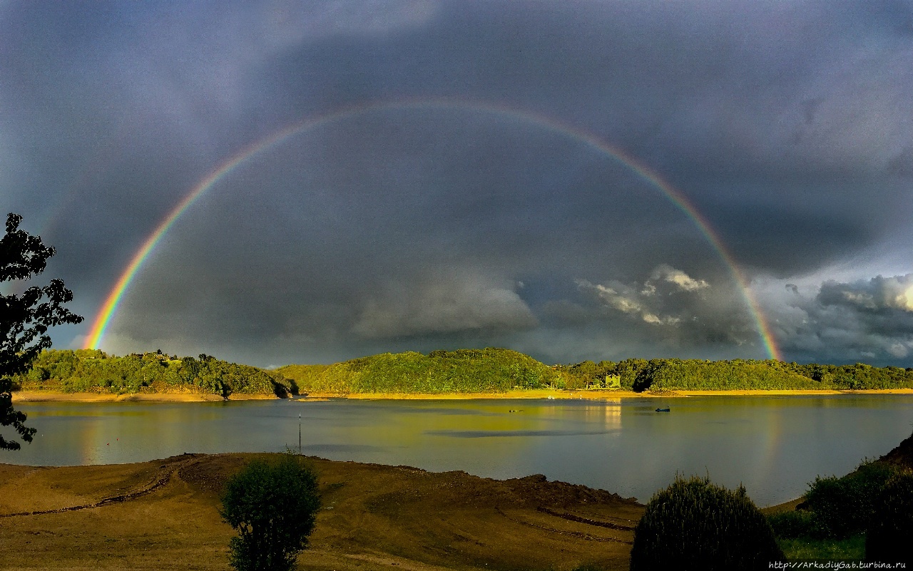 Шикарный замок. Просто Китеж-град какой-то. Но слава Богу этот не утоп. Но радуга от земли до земли — это что-то невероятное, такой даже и не припомню. Такая классика жанра и при этом никого народа, только твоя тень с фотоаппаратом!