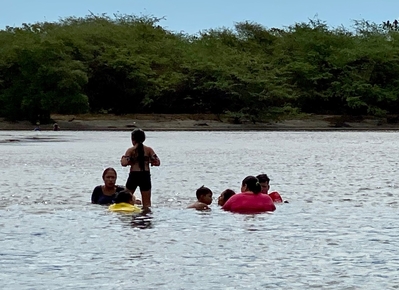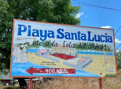 Эта закрытая бухта на месте называется Playa Santa Lucia, хотя на карте Гугл отмечена, как Playa San Juan Venado. Именно отсюда начинается заповедник Хуана Венадо. Я считаю, что правильнее привязать пляж с местным названием...