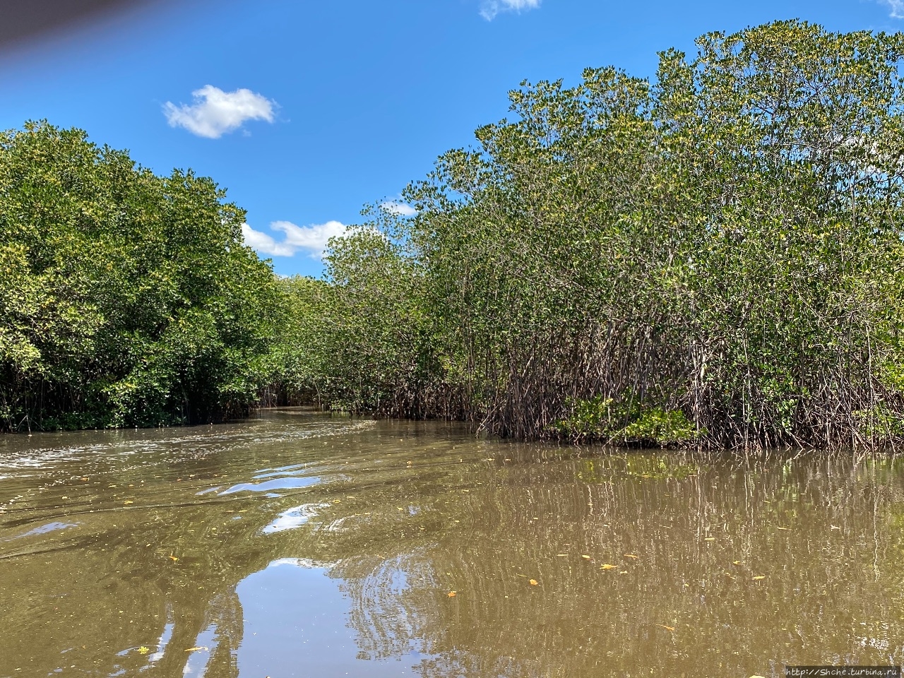 У меня по программе сперва была прогулка по мангровой реке на моторной лодке, а после неё 2-часовой урок сёрфинга. От урока я отказался, решив просто по-купаться это время в океане.