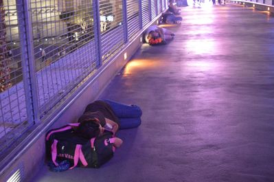 Если до этого удивил обилием лиц без определённого места жительства Сан-Франциско, то в Лас-Вегасе, как мне показалось, их ещё больше. Многие из них укладываются прямо на тротуар, но при этом "отдыхающие" вовсе не производят впечатление БОМЖей. Во всяком случае, они довольно прилично одеты. Возможно, это вовсе и не БОМЖи, а какие-нибудь несостоятельные студенты, которым очень хочется в Вегас, но не очень можется заплатить там за гостиницу.