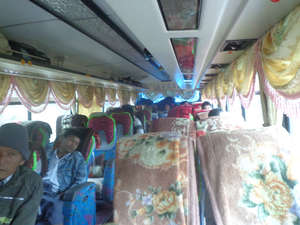 Из Сипо в город Лашо можно доехать на поезде, но это неудобно т.к. он прибывает к 18-00, если не опоздает и не факт, что около вокзала отели для туристов есть. Другой вариант — автобусом, 70 километров и 1,5-2 часа, в ординарном билет стоит 45р., в приличном 60-90р. Я прокатился на обеих типах, на первом фото в альбом приличный междугородний из Мандалая, в конце альбома(фото 37-39) — ординарный с кучей мешков внутри и процесс посадки.